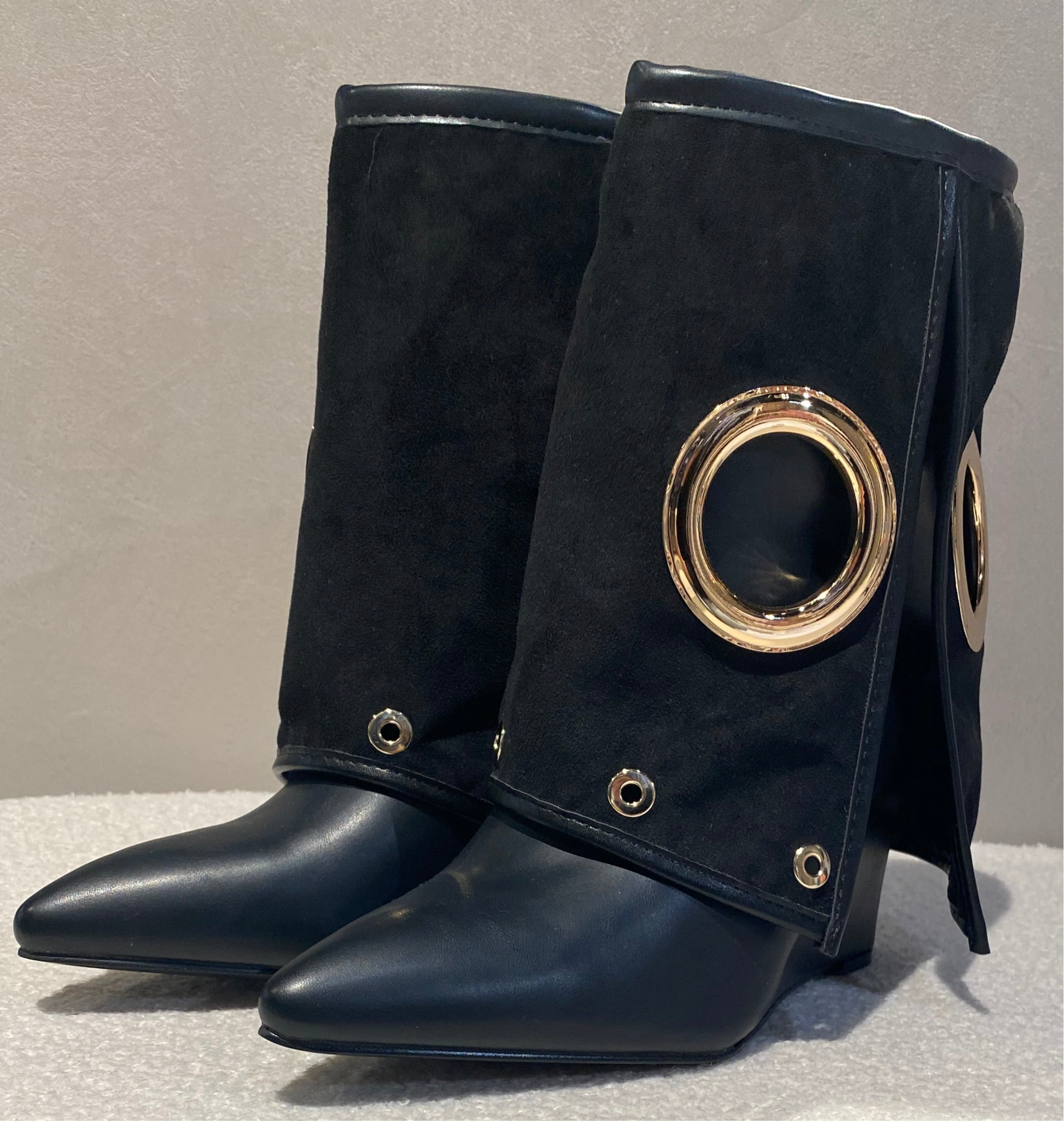 Designer-Boots in Braun mit goldenen Eyelet-Details