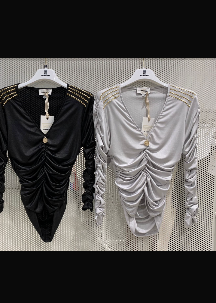 Dieses elegante Oberteil aus 100 % Polyester vereint Komfort und Stil mühelos. Erhältlich in Silber und Schwarz sowie in Grösse S, besticht es durch einen schmalen V-Schnitt und lange Ärmel. Raffinierte goldene Details setzen besondere Akzente und verleihen dem Modell von Gil Santucci eine modische, edle Note – perfekt für anspruchsvolle Looks mit zeitloser Eleganz.