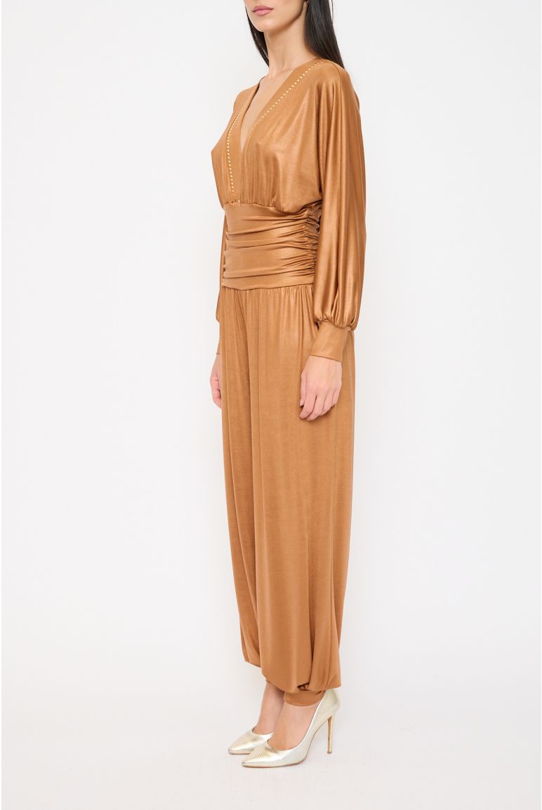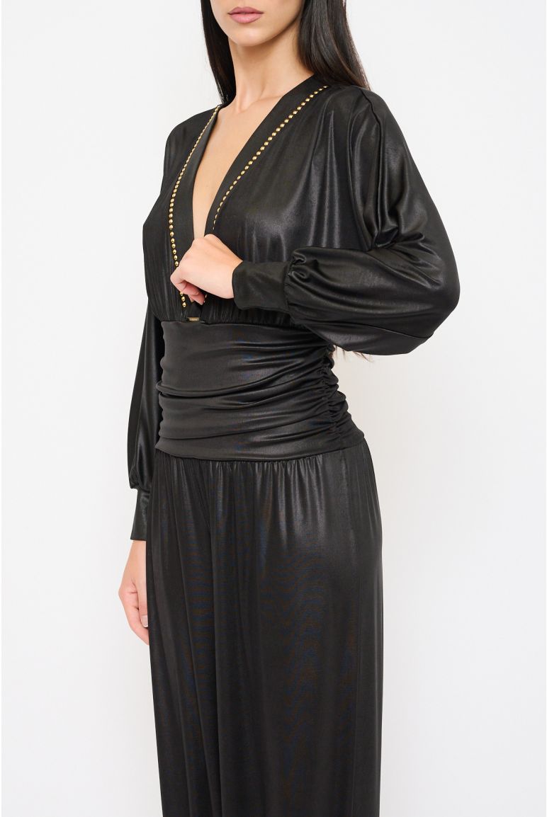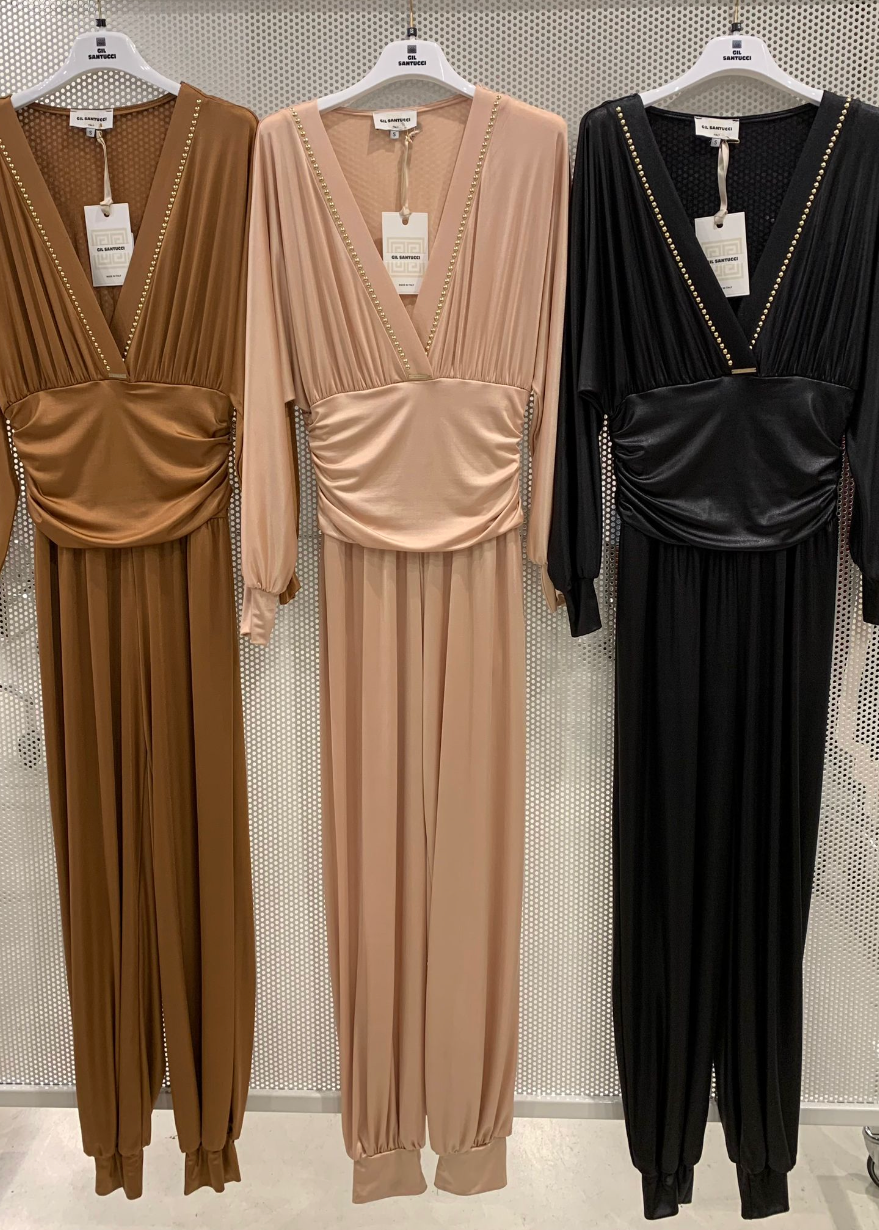 Dieser Overall vereint moderne Lässigkeit mit eleganter Leichtigkeit. Er ist in einem dezenten Schwarz gehalten und mit feinen goldenen Details von Gil Santucci veredelt, was ihm einen exklusiven Touch verleiht. Hergestellt aus 100 % Polyester verspricht er angenehmen Tragekomfort und eine stilvolle Silhouette. Erhältlich in Grösse S, eignet sich dieses Modell perfekt für anspruchsvolle Anlässe und stilbewusste Auftritte.