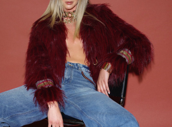 Erhöhen Sie Ihren Stil mit unserer eleganten Pelzjacke aus Polyester mit einer schönen bordeauxfarbenen Farbe. Diese Jacke ist perfekt, um aufzufallen oder elegante Outfits zu vervollständigen. Sie hält Sie leicht warm und verfügt über einen speziellen Verschluss mit Haken und Ring für einen besonderen Touch.